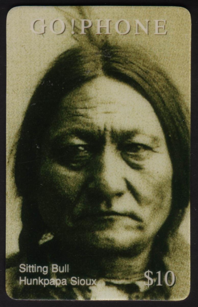 This collectible represents a part of American history connected to Native Americans and specifically honors the Hunkpapa Sioux tribe. The card is designed to be a phone card for Go!Phone services, providing prepaid calling value while commemorating the legacy of Sitting Bull.