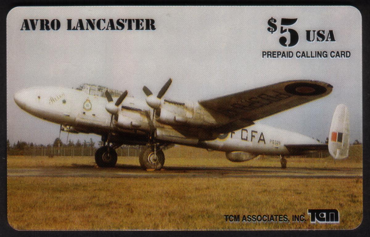 The card is a collectible item celebrating military aviation history, focusing on fighter jets, bombers, and other aircraft associated with the Royal Air Force during World War II. The design and imagery reflect the technical and historical significance of the Avro Lancaster bomber in aerial warfare.
