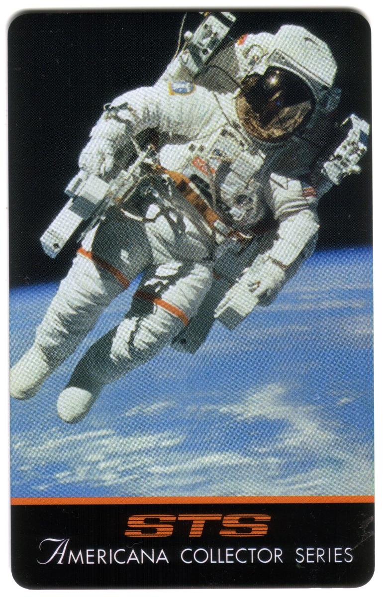 This collectible piece is part of the Americana Collector Series 2, emphasizing its focus on American history and achievements in space travel. The card's design promotes the legacy of astronauts and the technological advances made by NASA, especially during missions involving spacewalks and extravehicular activities beyond Earth’s atmosphere. The card is a tribute to both the human and technical elements involved in strategic telecom systems and space exploration documentation.
