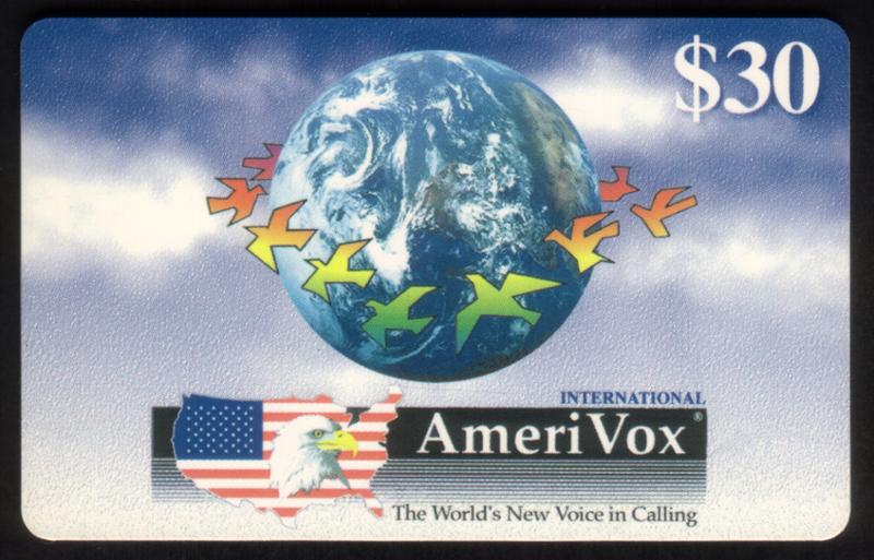 $30. International Phonecard (Horiz. Format - Peace Doves & Globe)