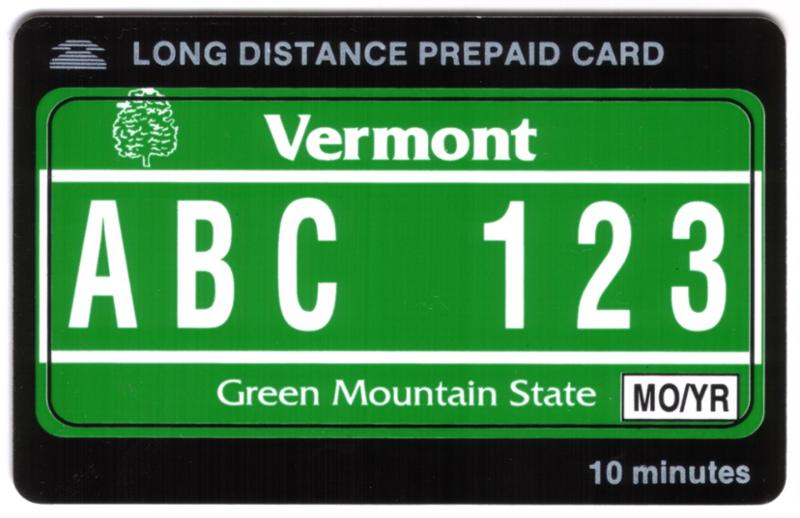 10m Vermont License Plate Phone Card: 'Green Mountain State' USED