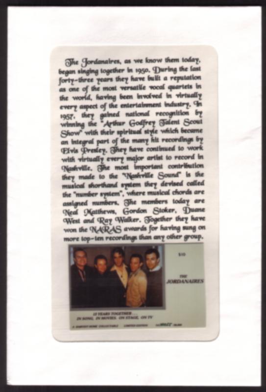 $10. The Jordanaires Spiritual Music Quartet Promo With Folder
